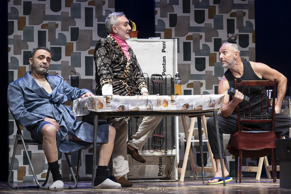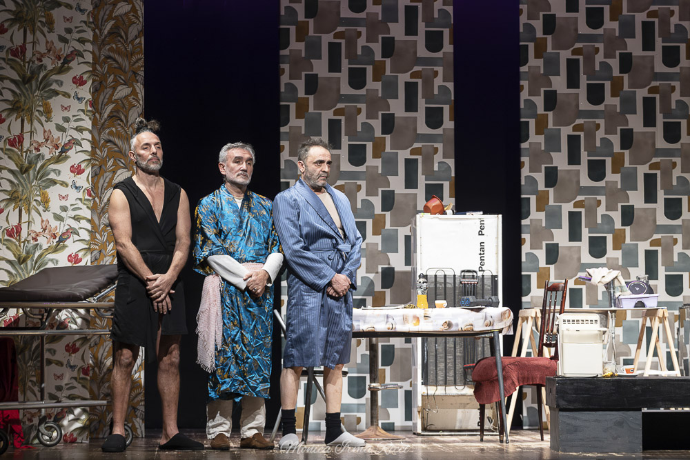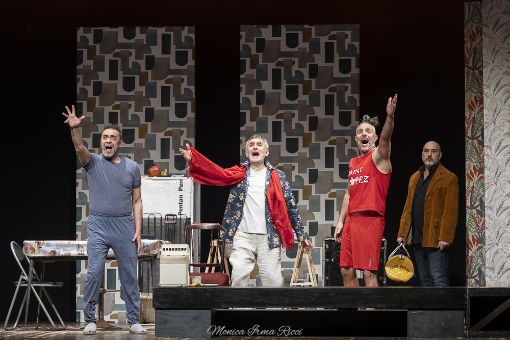 Infatti, in questa condizione si trovano tre amici, mariti separati interpretati con dinamismo e autenticità da Giancarlo Fares, Valerio Giombetti e Stefano Tomassini, che abitano in un appartamento messo a disposizione dal Comune di fronte al palazzo dove vive Attilio (Andrea Catarinozzi) con la moglie Silvana.